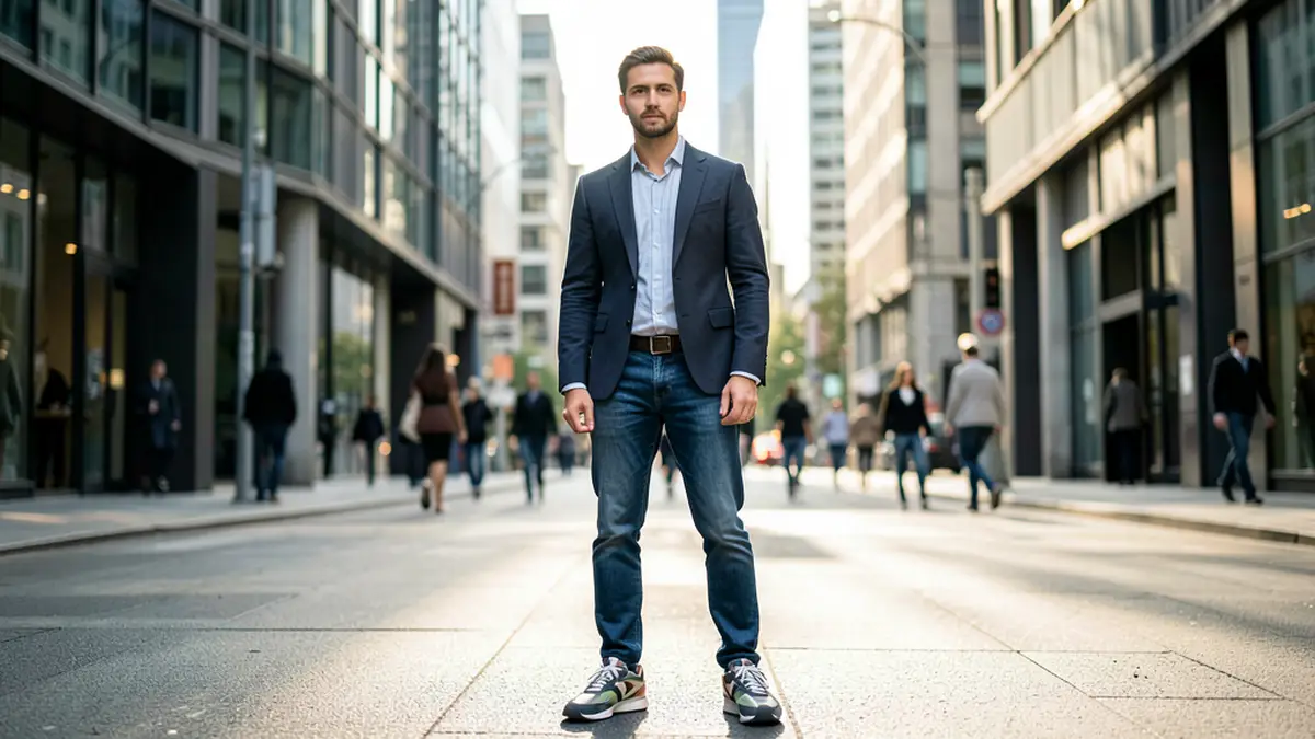 Сочетание джинсов, пиджака и кроссовок — это гибкая, современная и практичная стратегия для создания бизнес-кэжуал образа нового поколения. Она работает там, где важны баланс комфорта и профессионализма, а также там, где корпоративная культура допускает меньшую формальность.