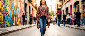 Введение в сочетание: почему это работает Джинсы-скинни, пончо и ботильоны — комбинация, которая умудряется