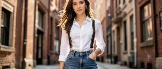 Введение: почему комбинация работает Комбинация джинсов-бойфрендов, рубашки и подтяжек — это синтез удобства и