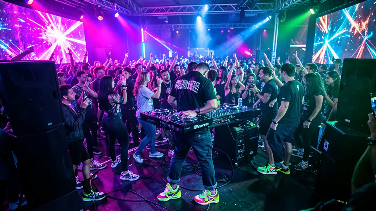 Неоновые цвета вызывают зрительный резонанс, максимальную вовлечённость и ощущение праздника. Электронная музыка с ее интенсивными басами и пульсацией находит визуальное отражение именно в ярких элементах одежды и обуви. Так формируется единство восприятия — слухового и зрительного.
