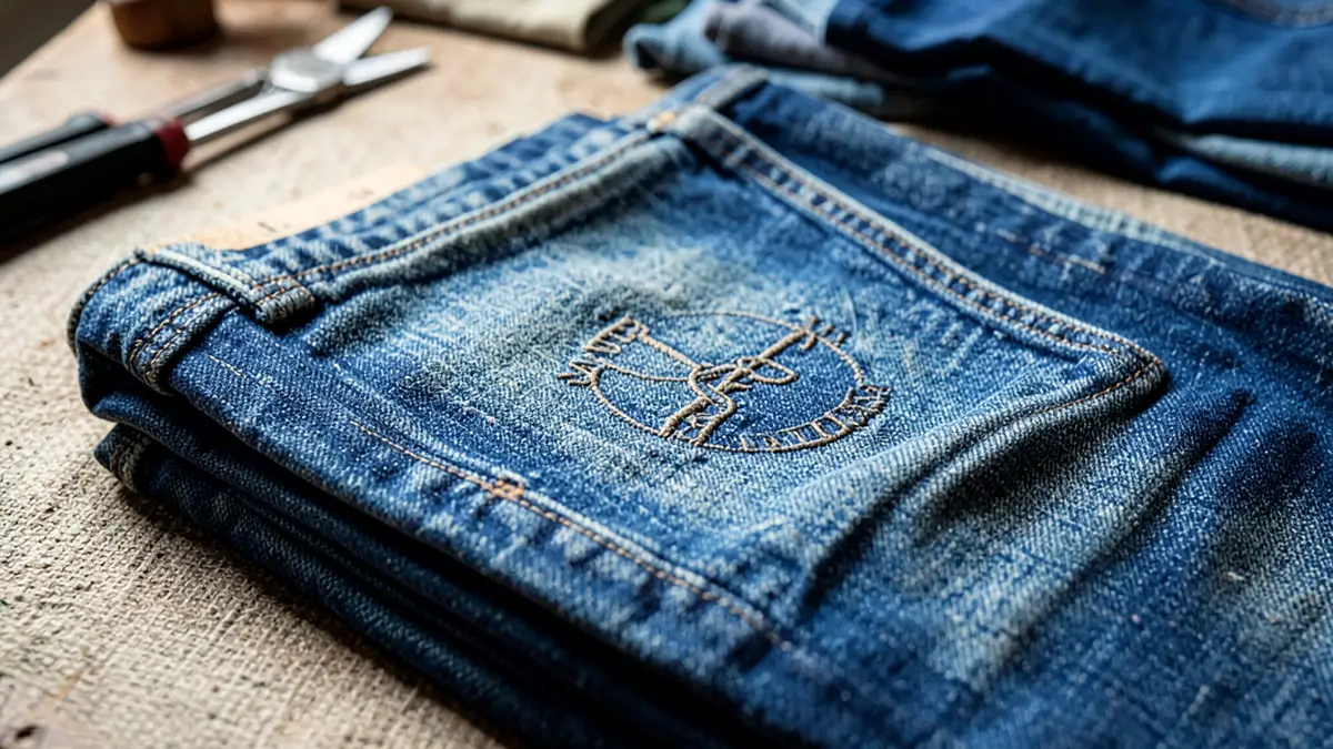 - Расположение: вышивка расположена симметрично на внешнем углу заднего кармана, не слишком высоко и не слишком низко.