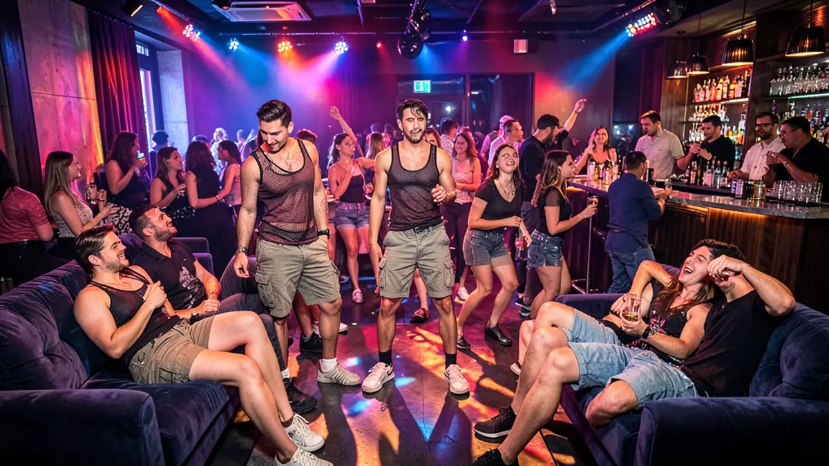 Рассмотрим несколько вариантов, как сочетать карго-шорты и сетчатый топ для разного типа клубных вечеринок: