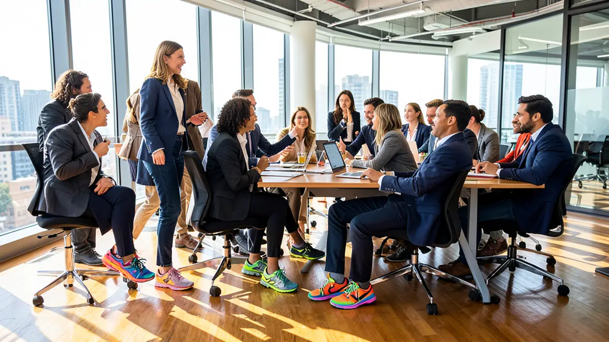 Яркие кроссовки могут влиять на атмосферу команды и восприятие сотрудника. Исследования корпоративного поведения показывают, что визуальные сигналы имеют значение при формировании первого впечатления и при взаимодействии внутри команды.
