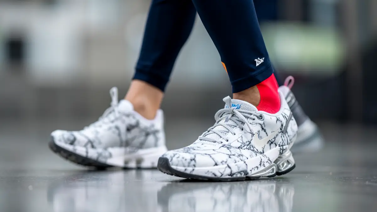 Плюсы и минусы мраморной обуви в комплекте со спортивным костюмом
