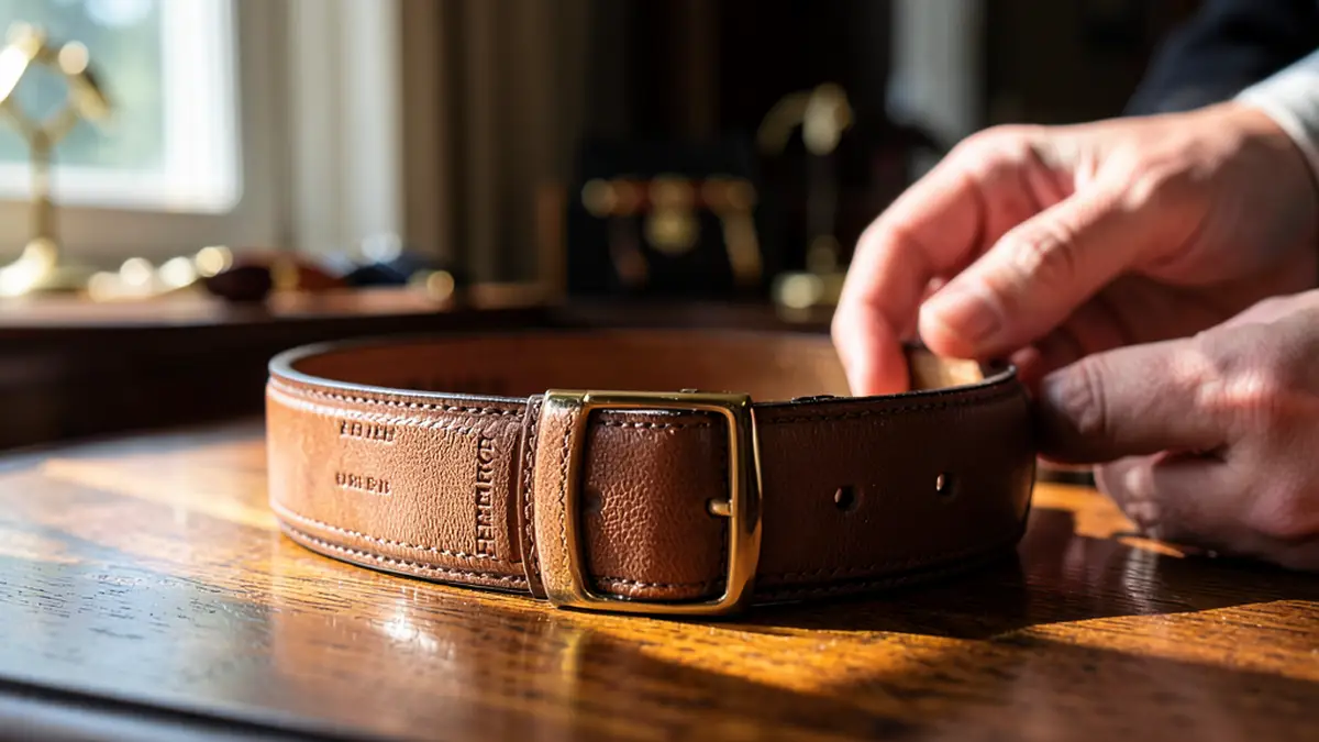 На внутренней стороне ремня обычно выгравирован размер и иногда серийный номер, которые согласуются с официальными данными бренда. Наличие числовых и буквенных комбинаций — важный элемент авторитетной маркировки.