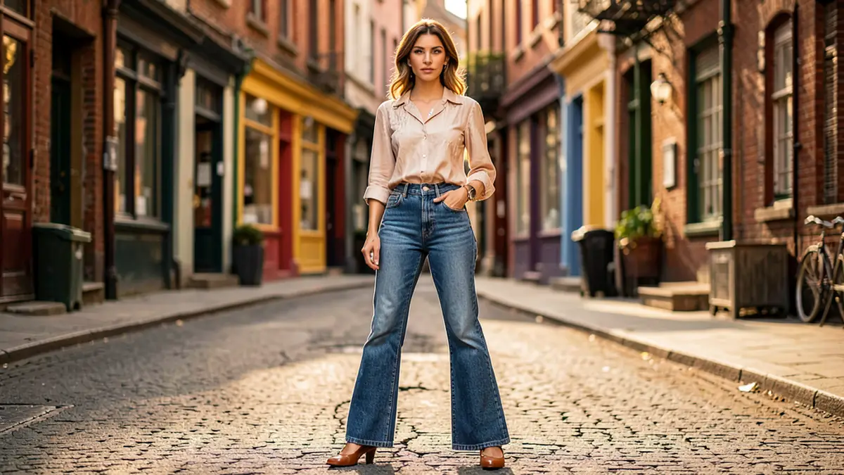 | Дневной комфорт | Легкость и практичность для прогулок и встреч | Синие джинсы-клеш, белая шифоновая блузка, бежевые туфли Мэри Джейн |