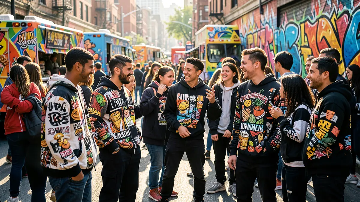 По последним исследованиям рынка, около 42% покупателей уличной одежды оценивают наличие food-тематики как значимый фактор выбора. Особенно популярна еда как вдохновение в коллаборациях с уличными художниками и креаторами.