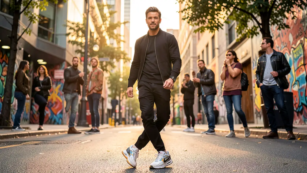 - Спортивный костюм: подчёркивает спортивное происхождение обуви